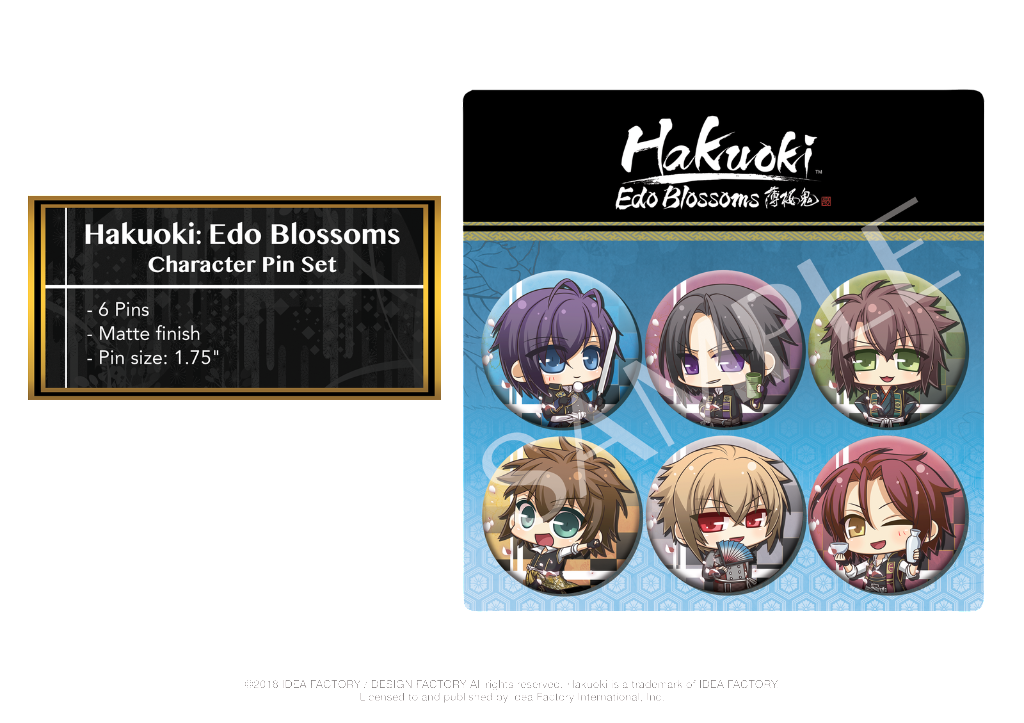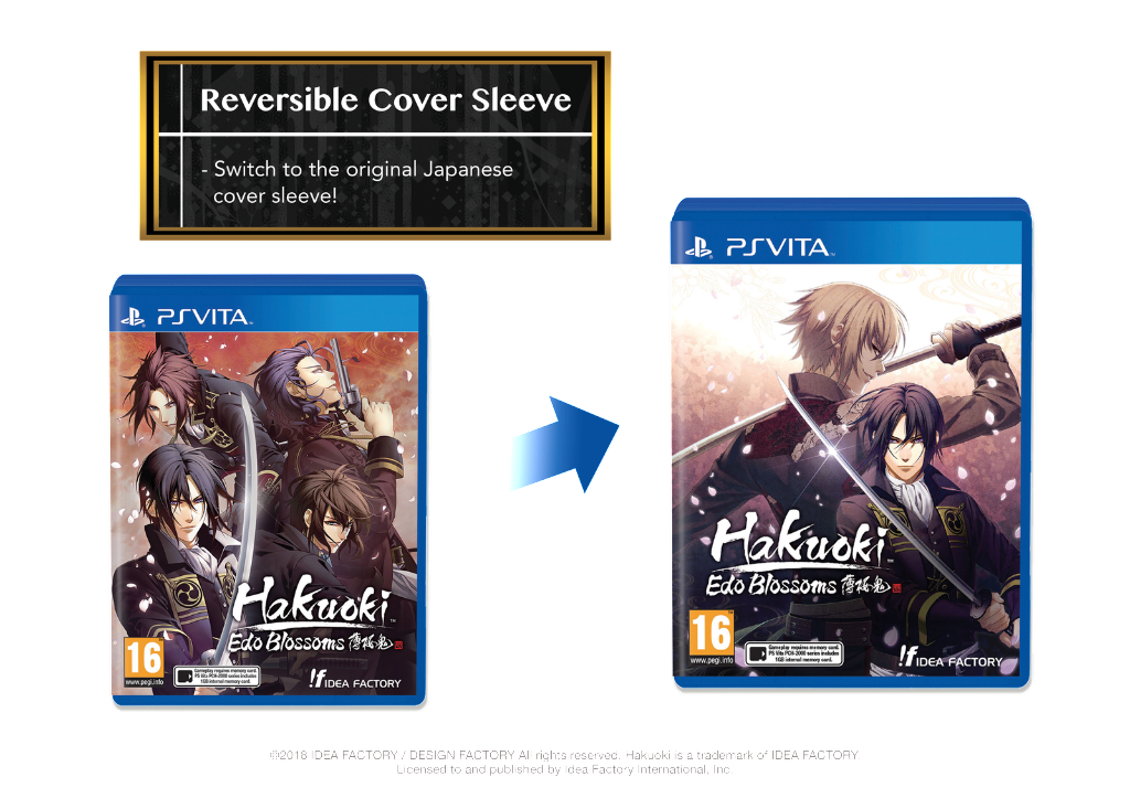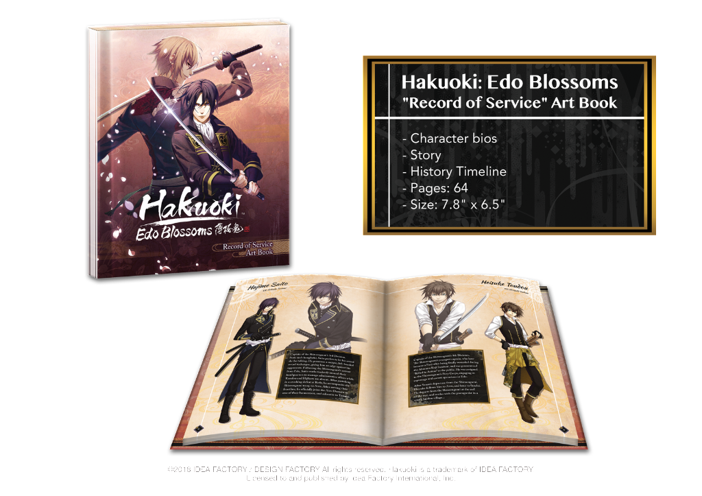 Hakuoki Edo Blossoms est un Visual Novel de type Otome, suite de Hakuoki Kyoto Winds, et sera disponible le 16 mars 2018 en Europe et trois jours plus tôt en Amérique du Nord. Cette édition sera disponible à la précommande dès le 14 février 2018