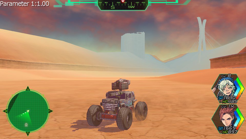 Dans ces screenshots nous avons droit aux paysages désertiques d’un Japon futuriste où il ne reste plus qu’une seule vierge pour sauver l’humanité, mais aussi des phases de combat au tank, d’exploration et de dialogues.