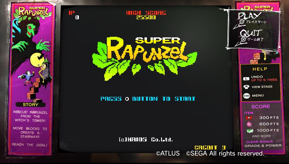Enfin, il dispose également d’un juke-box doté d’une liste impressionnante de morceaux du jeu, mais aussi de la série Persona. Il y a le choix pour égayer les discussions au comptoir ! Citons aussi le mode arcade (appelé Babel) : là aussi c’est une puzzle-game mais il y a un niveau de difficulté unique, frustrant une fois de plus dans cette version japonaise. Le jeu à deux en revanche, est assez sympa si vous avez des connaissances qui jouent à Catherine.
