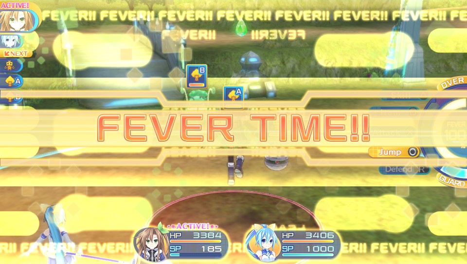 Le gameplay ressemble à l’opus Re;Birth, mais les armes n’ont plus une portée différente selon leur type et ne peuvent donc plus toucher plusieurs ennemis. Un système de gemmes a récupérer durant les combat fait son apparition : ces gemmes permettent de récupérer de la vie, du mana, ou encore d’augmenter la jauge de « Fever Time ». Dans cet épisode, la jauge EXE Drive a été remplacée par cette fameuse jauge qui permet, comme la jauge EXE Drive quand elle est remplie à 100% (grâce à la gemme qui lui est attribuée), de déclencher le « Fever Time » et ainsi prendre l’avantage sur les monstres ennemis avec un boost de vitesse, d’attaque et l’utilisation des attaques EXE Drive.