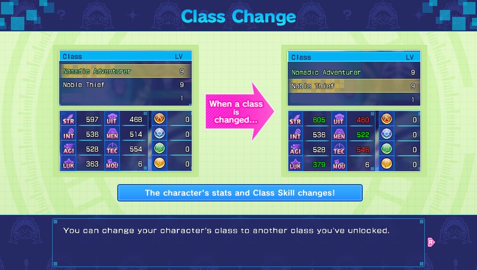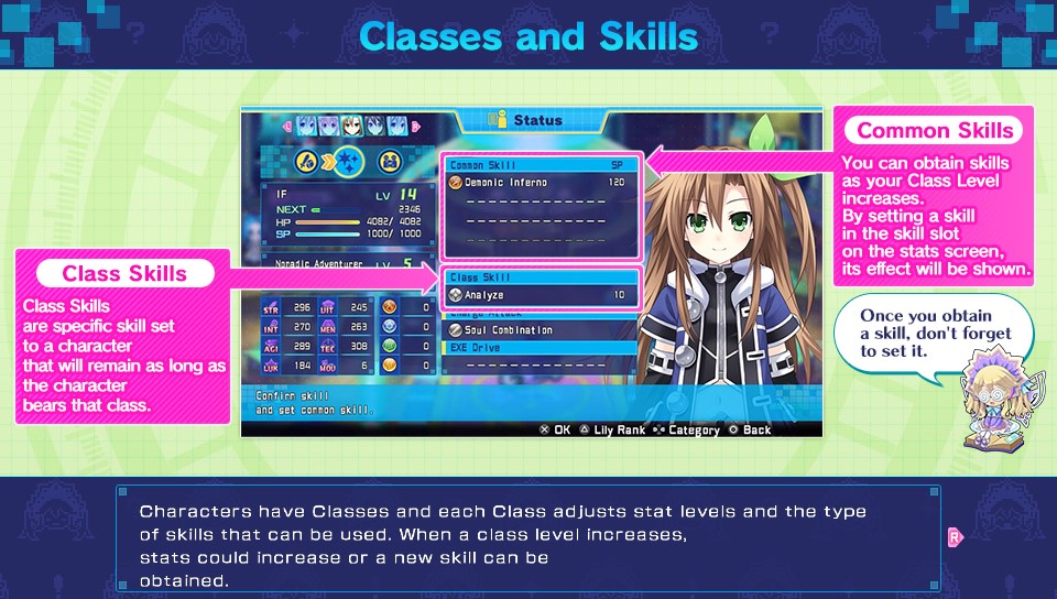 Au fur et à mesure de la progression dans l’histoire (en plus de faire augmenter les niveaux de nos héroïnes) vient s’ajouter une grosse nouveauté, la plus grosse de l’histoire de la série : les classes !