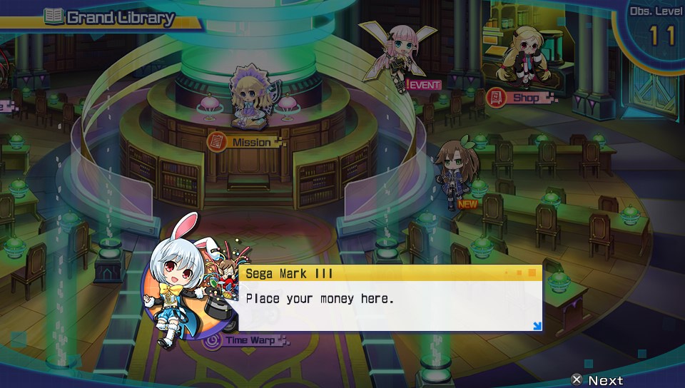 Le jeu est bien optimisé puisqu’il ne souffre pas de latences ni de crashs, les temps de chargement sont quasi inexistants, mais j’ai pu observer quelques fautes de frappe dans les parties tutoriels que nous offre Histy (Histoire). Le jeu est beau disons-le franchement, le chara-design de Tsunako n’est pas déplaisant, le seul petit hic pourrait être les textures, comme dans quasiment tous les opus de la série elles ne sont pas très jolies. Il manque des personnages c’est certain, alors qu’on remarque qu’il y a une tonne de personnages jouables dans les autres opus avec les personnages d’éditeurs et de développeurs comme Marvelous, ici nous avons de la nouveauté mais un trop léger casting niveau personnages jouables. Il y a bien trop de SEGA Hard Girls non jouables, à voir si certaines seront disponibles via DLC. Concernant la soundtrack du jeu, elle est trop légère. Non pas qu’il n’y ait pas beaucoup de pistes différentes mais parce qu’il y a trop peu de nouvelles sonorités, toujours léger en comparaison aux musiques que l’on peut écouter depuis des années sur les opus précédents. (On peut aussi noter la présence inutile d’une option qui permet de voir sous les jupes des héroïnes.) Pour finir, je pense que Superdimension Neptune VS SEGA Hard Girls est tout simplement un jeu a réserver aux fans de la série ou du constructeur SEGA mais même en temps que non fan de SEGA j’ai pu apprécier ce titre avec ces moult références . Et vous appréciez-vous cette touche de fan-service ? |